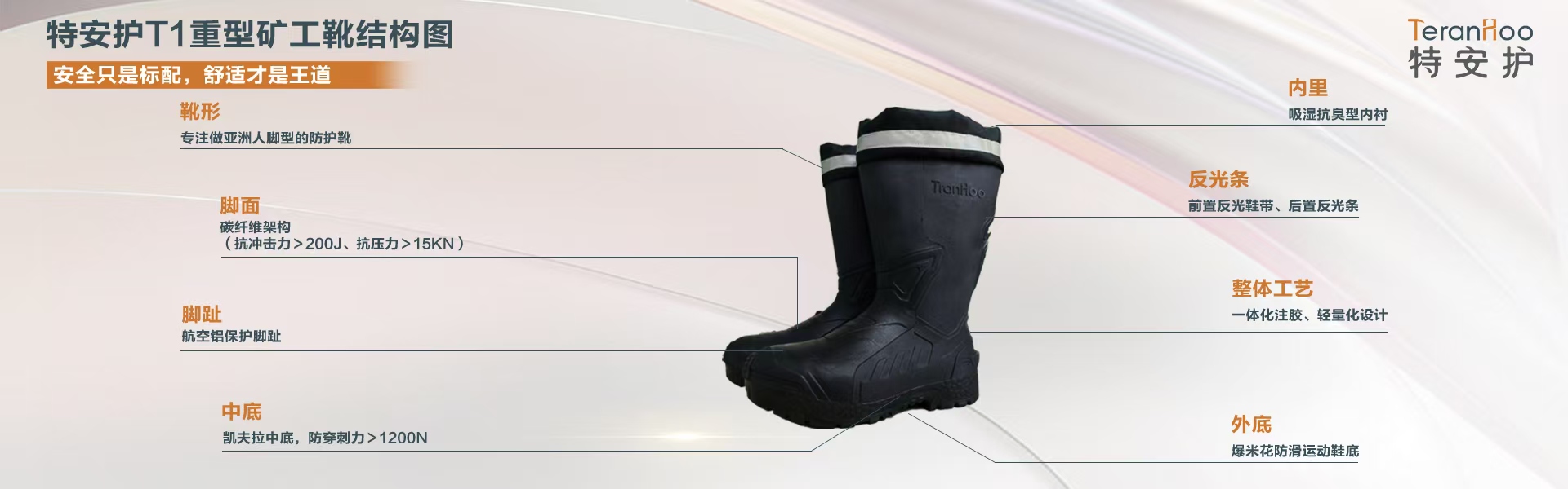 轻量化设计:整体设计轻量化,比普通安全靴轻 18%,减轻了工人脚部的负担,使工作更加轻松。